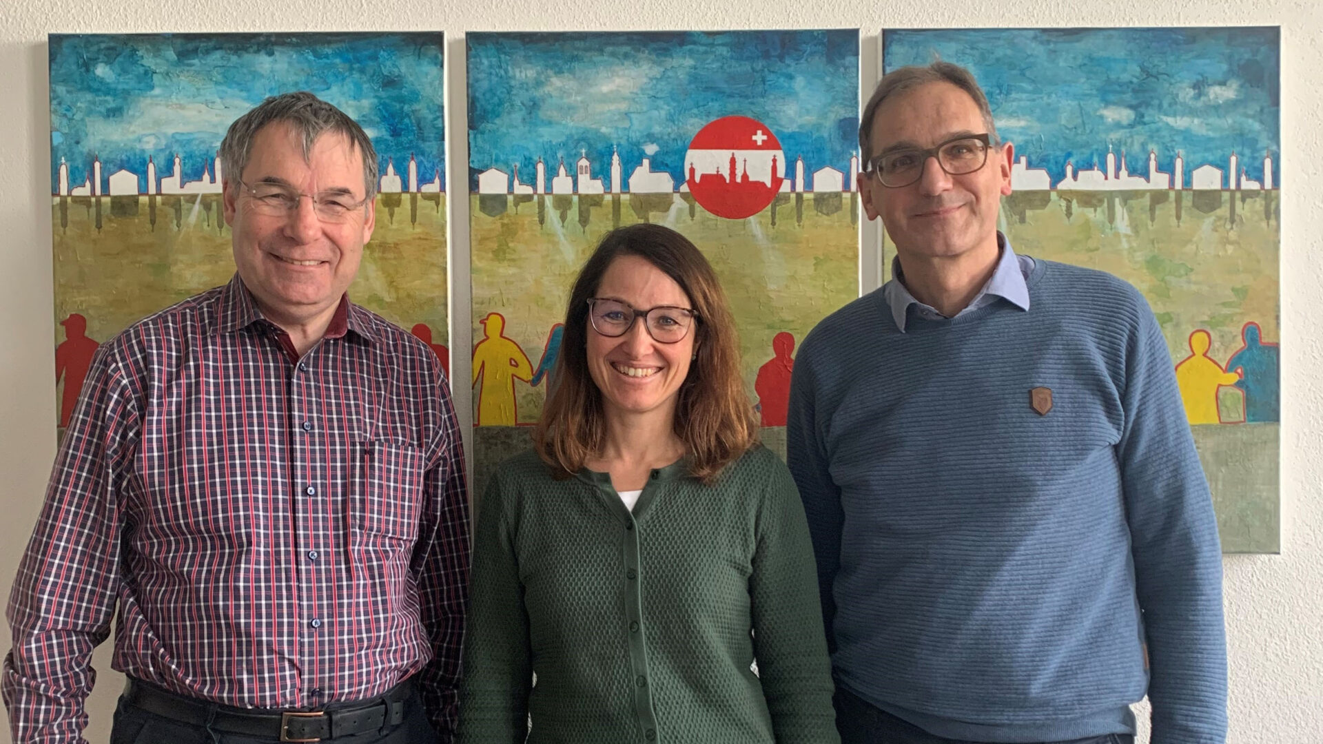 Seit Anfang 2022 sorgen bei der Inländischen Mission drei Personen dafür, dass «die Kirche im Dorf bleibt». Neben den bekannten Gesichtern Urban Fink, Geschäftsführer (links), und Denise Imgrüth, Finanzen, ist neu Martin Spilker bei der IM tätig. Er wird sich um Kommunikation und Administration des Solidaritätswerks kümmern. – Wir heissen Martin Spilker bei der IM herzlich willkommen!