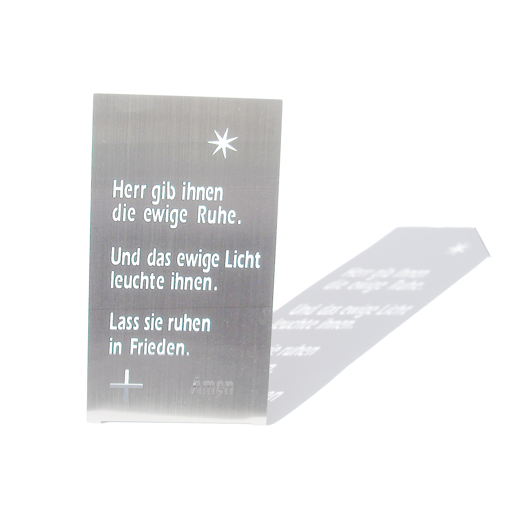 Das Totenerinngerungslicht ist aus Edelstahl gefertigt. Es schmückt das Grab lieber Menschen, die von uns gegangen sind. So bettet es die Verstorbenen in unser Gebet ein und ist Licht für die Hinterbliebenen.