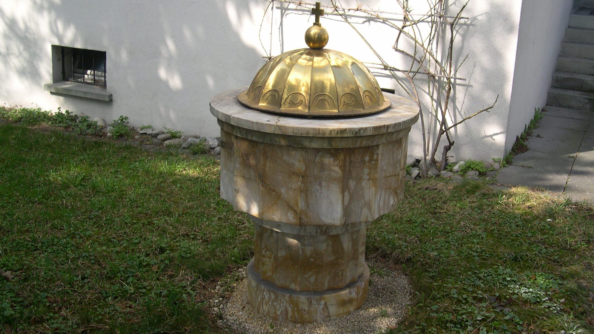Masse: 120 cm (Höhe) x 70 cm, Abdeckungskuppel vergoldet